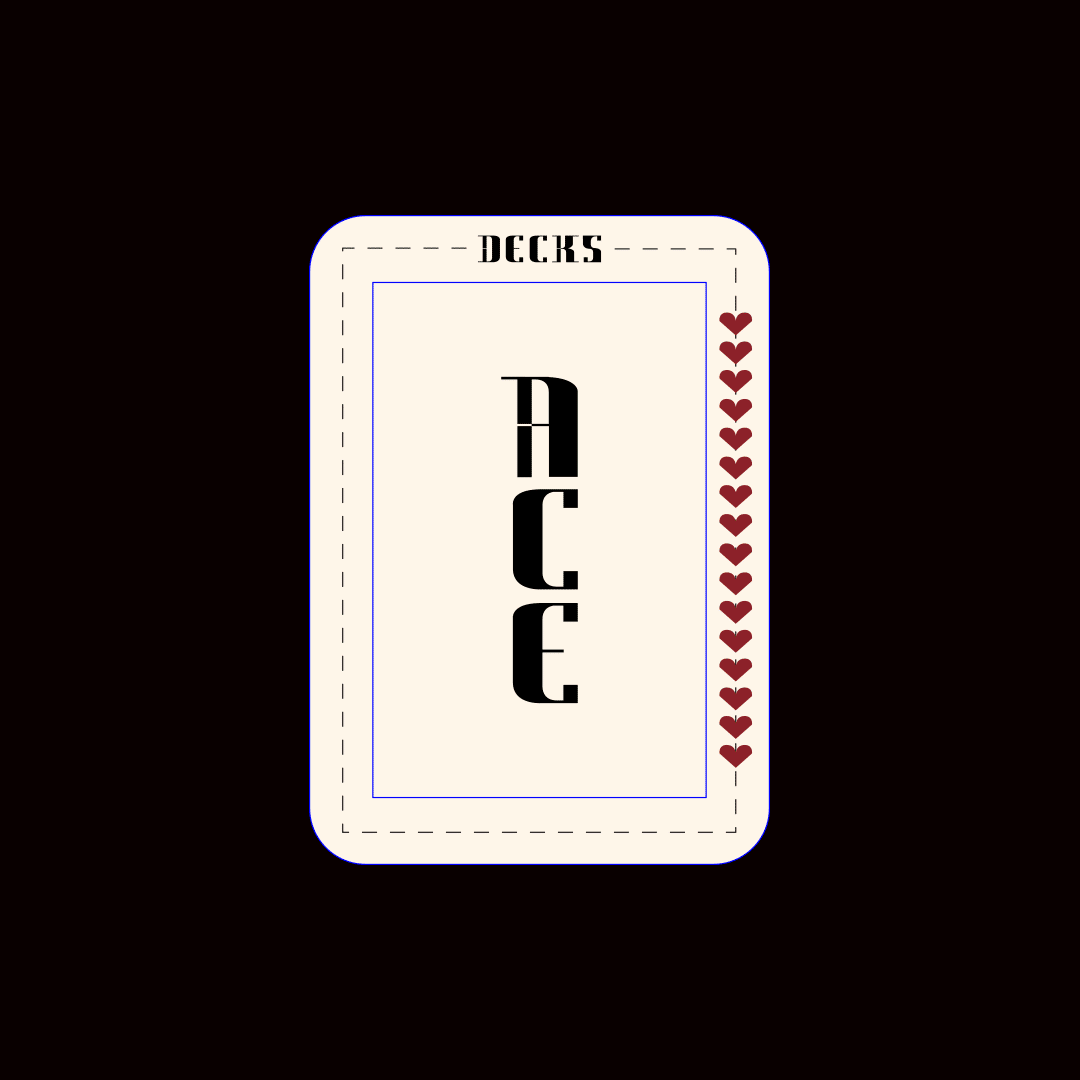 This typeface is inspired by the motion of shuffling cards, with slits throughout the typeface, with packaging of a deck of cards.